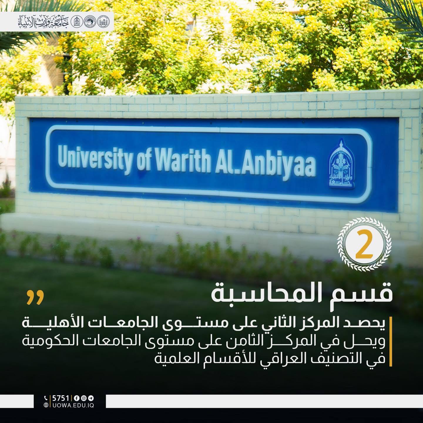 انجاز اكاديمي جديد بتصدر قسم المحاسبة في جامعة وارث الأنبياء(ع)