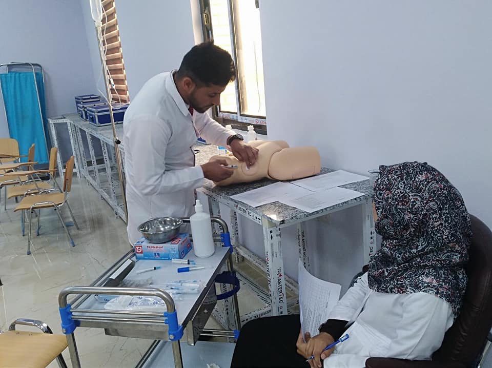 طلبة كلية التمريض يباشرون باجراء الامتحانات العملية وسط امنيات الجميع لهم بالنجاح والموفقية وباجواء امتحانية مدروسة ومجهز