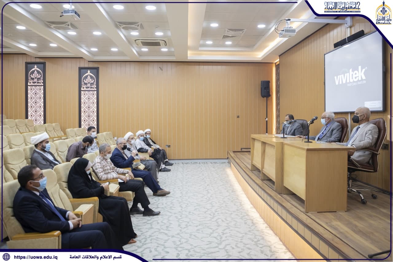 اجتمع السيد رئيس الجامعة الاستاذ الدكتور طالب حسن موسى برفقة السادة المساعدين الاداري والعلمي الاستاذ الدكتور نوفل الاعرجي والاستاذ الدكتور عباس الدعمي لمتابعة الاستعدادات والتحضيرات التي هيأتها الكلية ، والوقوف على احتياجاتهم ومتطلبات المرحلة القادمة من العام الدراسي الحالي ، اذ اكد السيد رئيس الجامعة على ضرورة الحفاظ على المسيرة التعليمة والأمانة العلمية في إيصال المواد الدراسية الى الطلبة خدمةً للمسيرة العلمية في بلدنا العزيز ، وهذا ما دأبت عليه الجهة الراعية لها وهي العتبة الحسينية المقدسة التي كانت ومازالت داعمة للنهوض الجدي بالواقع التعليمي في البلد.