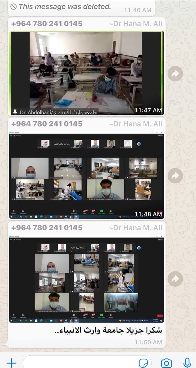 في الختام تقدم الفريق الوزاري لجامعة وارث الأنبياء (عليه السلام) وللكوادر بالشكر والثناء واشادوا بمستوى الجهوزية العالي الذي اعدته الجامعة في الاستعداد للامتحانات النهائية وكذلك اشادوا بالشكر على تواجد الكليات بشكل متواصل في منصات المتابعة الوزارية.