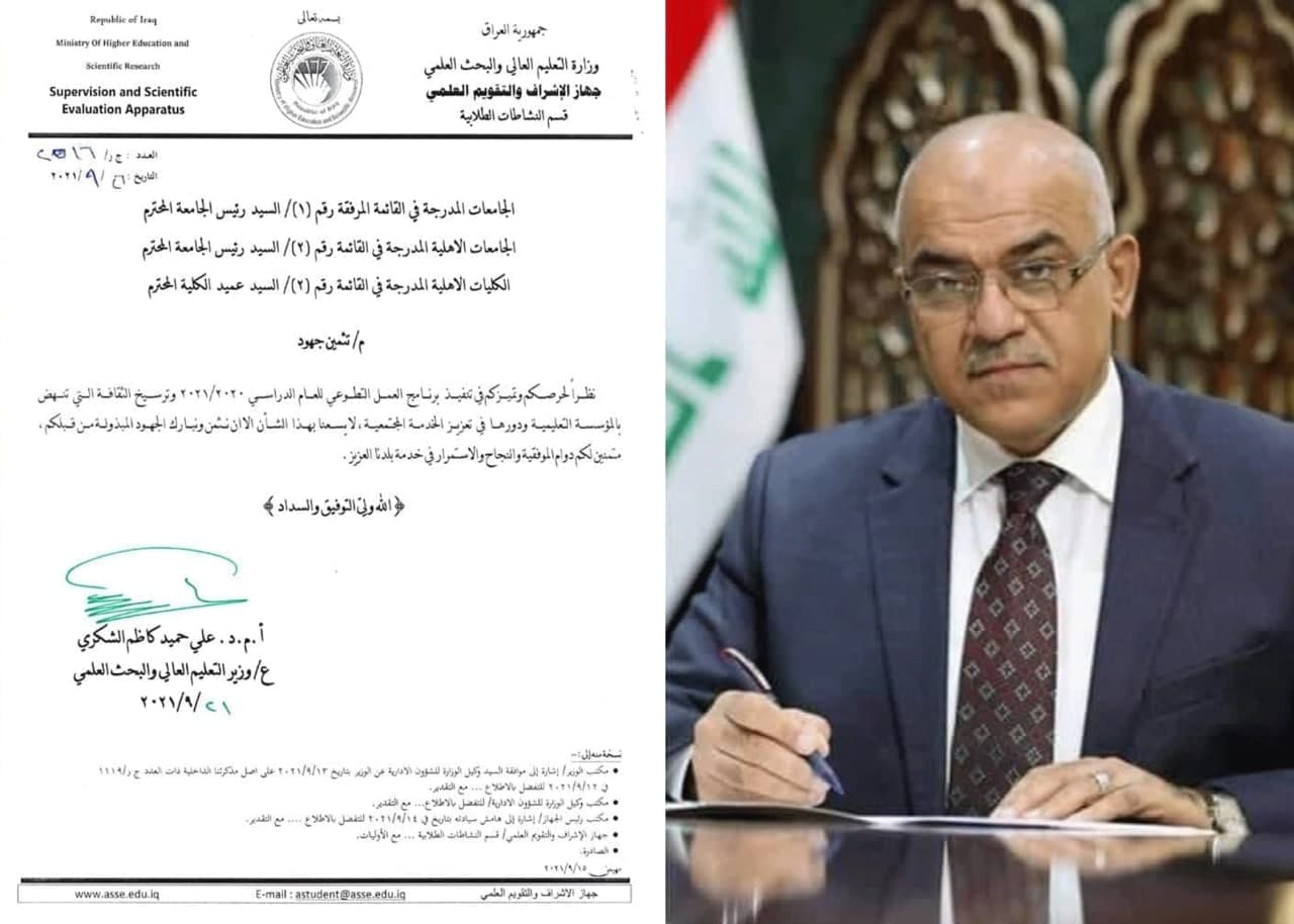 وزير التعليم العالي والبحث العلمي يثمن جهود جامعة وراث الانبياء(عليه السلام)