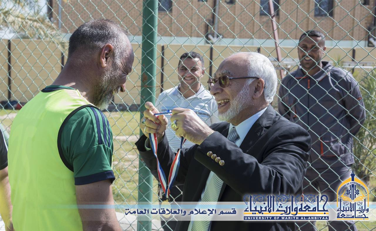 اقام قسم النشاطات الطلابية بطولة موظفي جامعة وارث الانبياء والتي اقُيمت على ملعب الجامعة بمشاركة ثمانية فرق من اقسام وكليات الجامعة، وقال رئيس قسم النشاطات الطلابية م.م. همام الخفاجي اختتمت البطولة بالمباراة النهائية التي جرت بين فريقي قسم الخدمات العامة (باللون البرتقالي) وفريق رئاسة الجامعة (باللون الاصفر ) وانتهت بفوز فريق الخدمات على فريق الرئاسة بنتيجة ٥-١ وبحضور السيد رئيس الجامعة الذي وزع جوائز البطولة للفائزين.