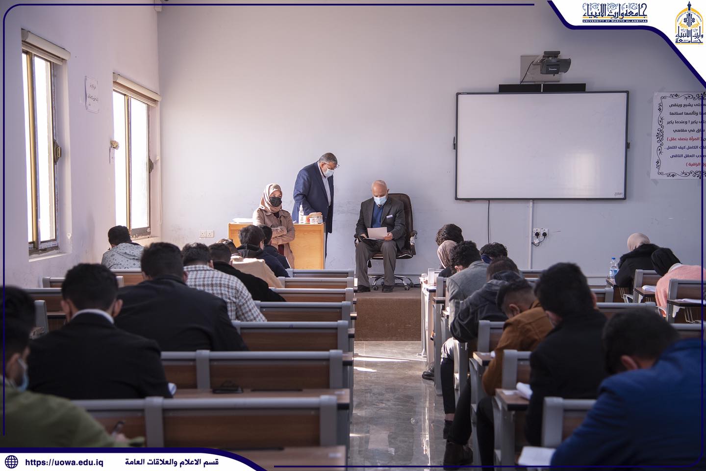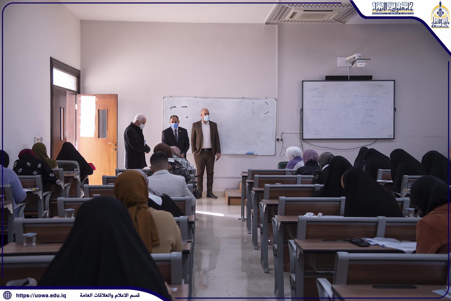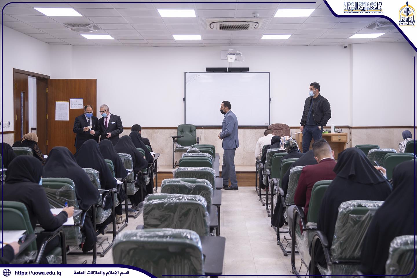 استمرار الامتحانات الحضورية لطلبة كليات واقسام جامعة وارث الانبياء(عليه السلام)، حيث تفقد السيد المساعد الاداري الاستاذ الدكتور نوفل الاعرجي، والسيد المساعد العلمي الاستاذ الدكتور عباس الدعمي خلال جولتهما سير الامتحانات الحضورية مع التأكيد على الالتزام بالاجراءات الوقائية والصحية.