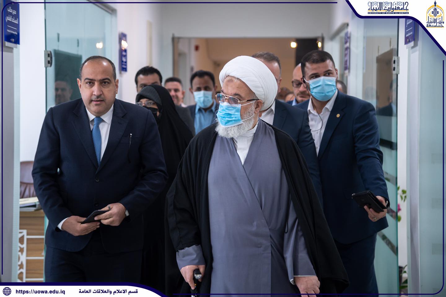 ومن جانبه عبر السيد رئيس الجامعة الاستاذ الدكتور ابراهيم الحياوي عن سعادته بزيارة سماحة الشيخ الكربلائي التي أثرت رئاسة الجامعة بالتوجيهات القيمة، سائلا الله عز وجل أن يوفق الجميع لخدمة بلدنا العزيز.