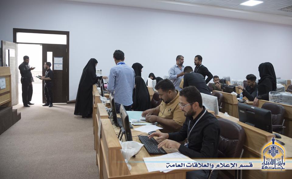 استقبلت جامعة وارث الأنبياء الطلبة الراغبين بالتقديم على كليات و أقسام الجامعة وتم توجيههم من قبل الفريق الإلكتروني الخاص بالتسجيل بملئ الاستمارات والمعلومات ومصادقتها من قبل الجامعة.