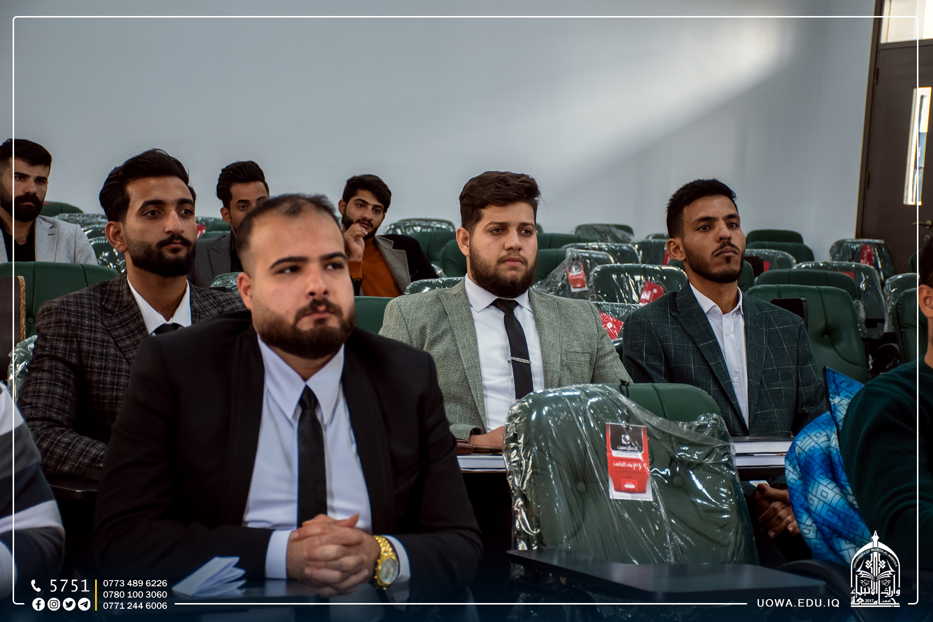جانب مصور من مناقشة سجلات التدريب الصيفي لطلبة المرحلة الرابعة، ضمن متطلبات التخرج لطلبة كلية القانون في جامعة وارث الانبياء (عليه السلام).