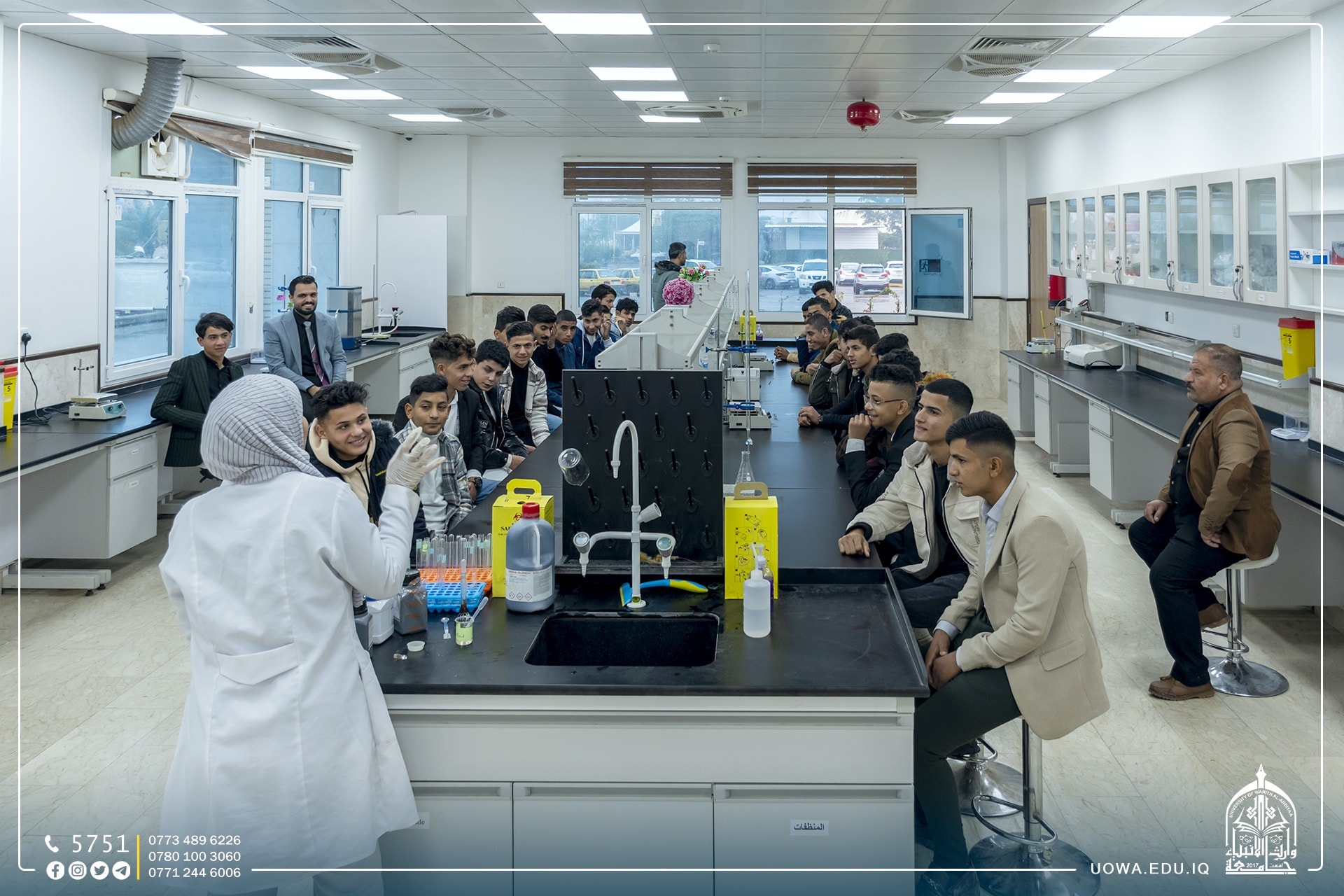 إذ قام الطلبة بجولة في أروقة كليات واقسام الجامعة، وزيارة المختبرات العلمية فيها كما تم عمل تجربة كيميائية للطلاب في مختبرات كلية الطب، بالإضافة إلى إجراء مسابقة معرفية.