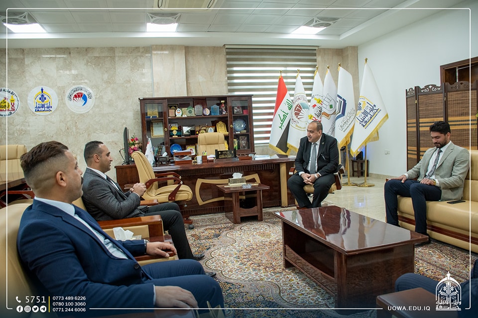 استقبل السيد رئيس الجامعة الاستاذ الدكتور ابراهيم الحياوي وفد من مديرية الامن الوطني في محافظة كربلاء المقدسة