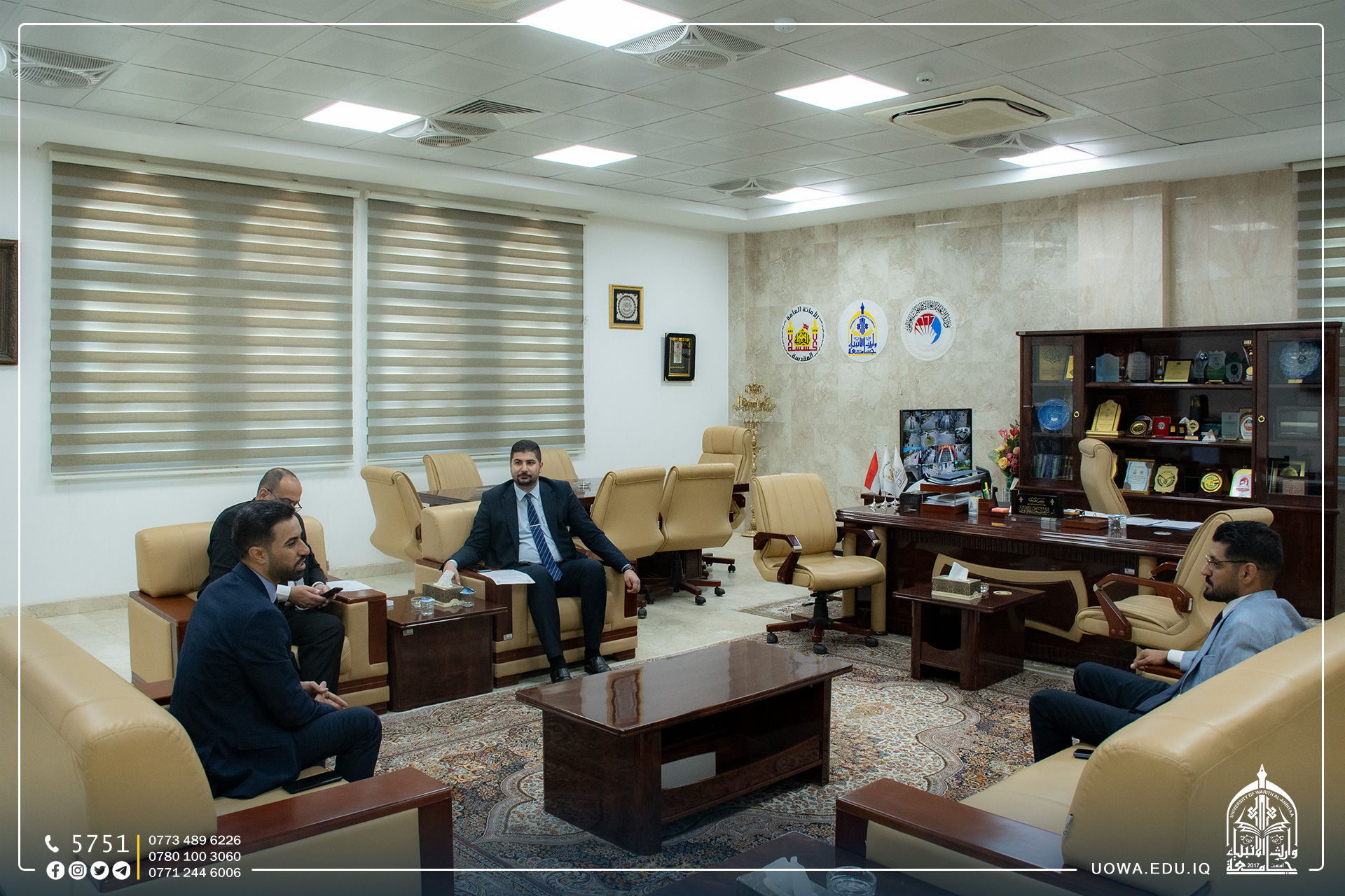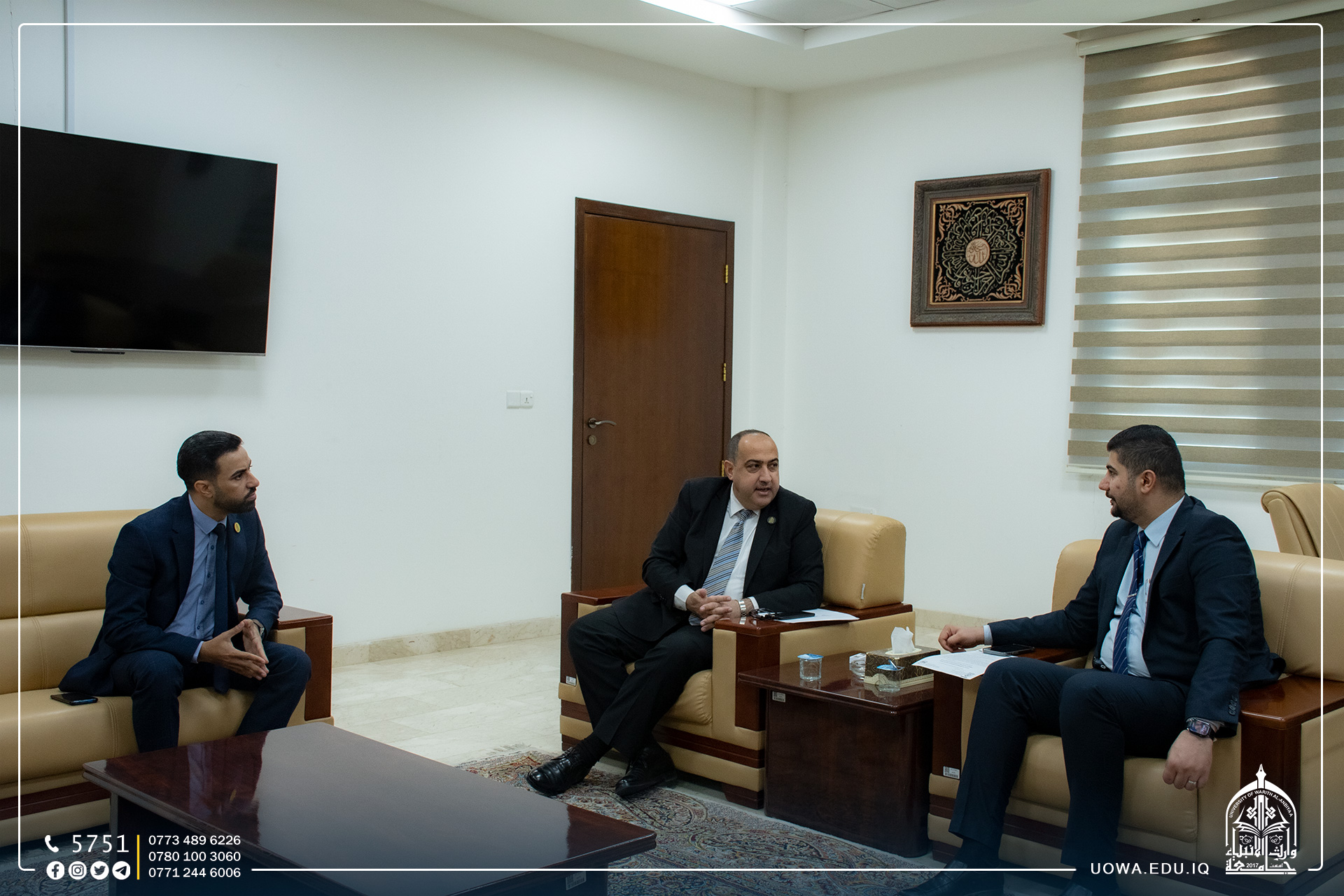 رئيس جامعة وارث الأنبياء (عليه السلام) الأستاذ الدكتور إبراهيم الحياوي يستقبل رئيس قسم الإعلام في العتبة الحسينية المقدسة المهندس عباس الخفاجي، وذلك لتعزيز التعاون بين قسم الاعلام في العتبة الحسينية المقدسة ورئاسة الجامعة.