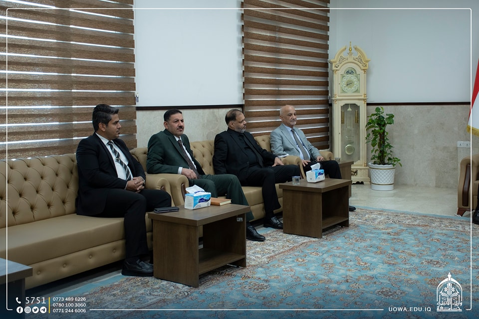 استقبل السيد رئيس الجامعة الاستاذ الدكتور ابراهيم الحياوي، وفد نقابة الاكاديميين /فرع كربلاء برئاسة الاستاذ الدكتور منير الدعمي، والشيخ الحقوقي رباح حسين الرباح
