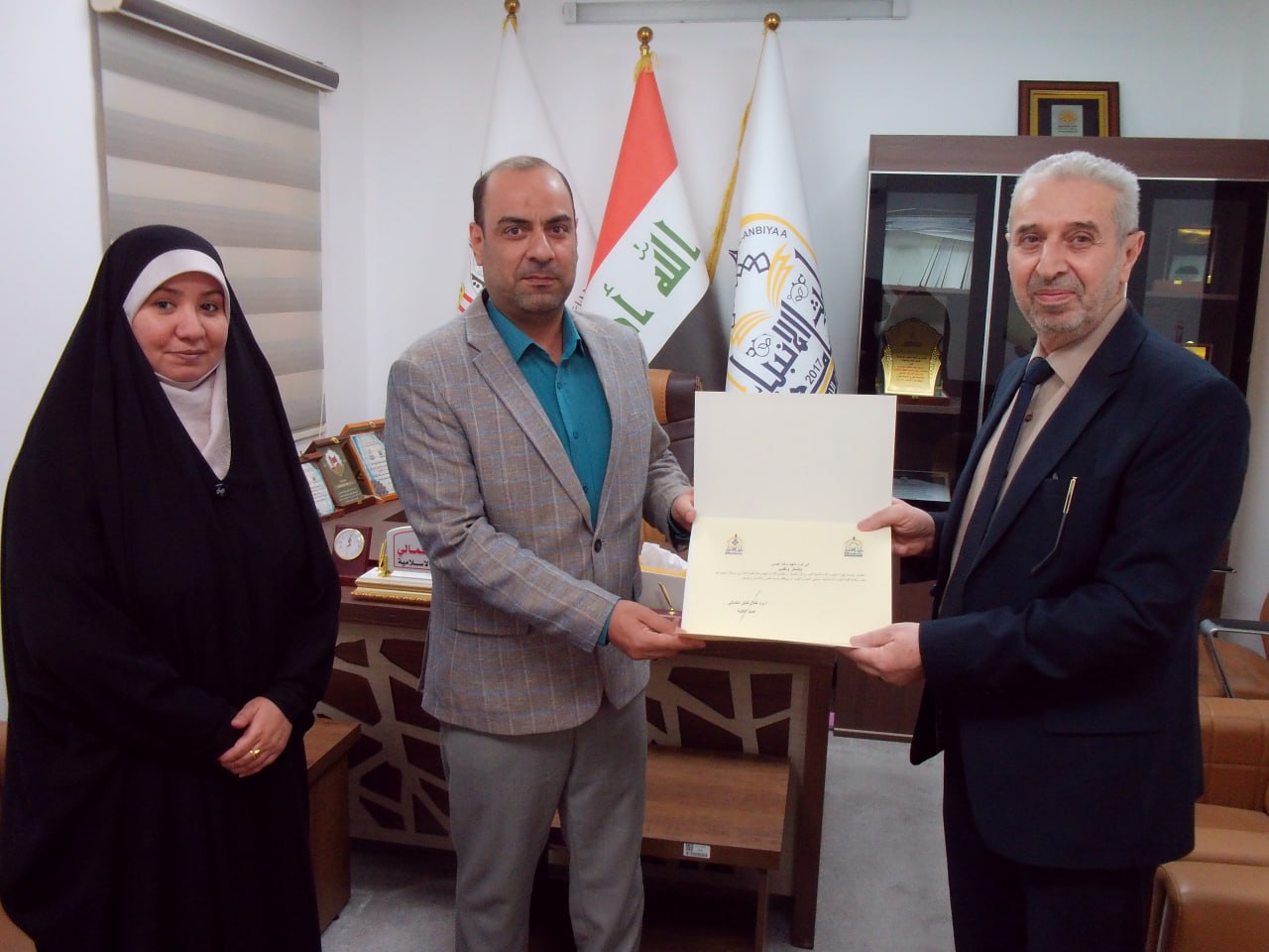 السيد عميد كلية العلوم الإسلامية يُكرم التدريسي م.م مرتضى علي تقديرًا لجهوده الأكاديمية