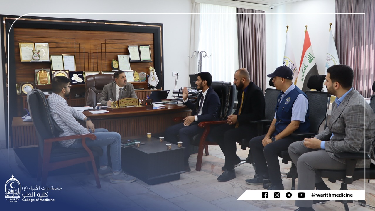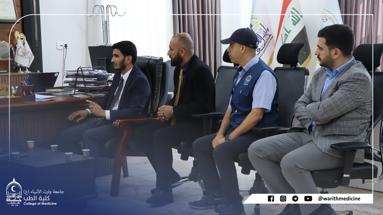 لمتابعة نجاح الامتحانات الإلكترونية بنظام TBLعقد السيد عميد كلية الطب في جامعة وارث الأنبياء عليه السلام الأستاذ الدكتور علي عبد سعدون الغزي اجتماعًا مع مدير مركز الحاسبة الإلكترونية ومسؤولي الشعب في المركز ومسؤول الشعبة الرقمية في الكلية لمناقشة سير ونجاح الامتحانات الإلكترونية التي أُجريت بنظام التعليم القائم على حلّ المشكلات (TBL) عبر الإنترنت. وتناول الاجتماع تقييم الأداء التقني في القاعات وكفاءة البنية الإلكترونية وآليات الدعم الفني التي أسهمت في نجاح التجربة.