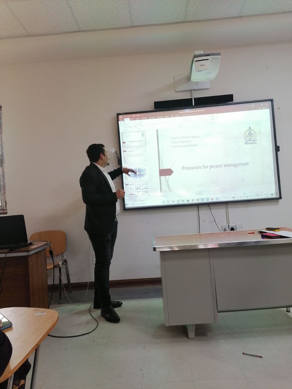 حرصاً من جامعة وارث الانبياء (ع) على تطوير ملاكاتها الهندسية و الاكاديمية، اقام قسم التعليم المستمر في جامعة وارث الانبياء (ع) دورة تدريبية خاصة بحزمة من برنامج Primavera الذي يستخدم في إدارة المشاريع التي يتم استخدامها لإدارة ومراقبة الأنشطة المتعلقة بالمشروع بالتعاون مع كلية الهندسة - قسم الهندسة المدنية حيث حاضر في هذه الدورة م. د. وائل عاصم، م. م. باسل عباس التي استمرت لمدة ثلاثة ايام ابتدأًت من 5/1/2022 وانتهت بتاريخ 9/1/2022 . محاور الدورة• مقدمه عن برنامج البريمافيرا.• أضافه هيكليه للمؤسسه او الشركه.• إضافة مشروع جديد وأدخال الأنشطة المختلفه.• إنشاء علاقات بين الانشطه المختلفة.• حساب المده الزمنية للمشروع.اهتمت الدورة بتنصيب وكيفية استخدام برنامج البريمفيرا حيث استهدفت الدورة الكادر الهندسي و الاكاديمي في قسم الهندسة المدنية.