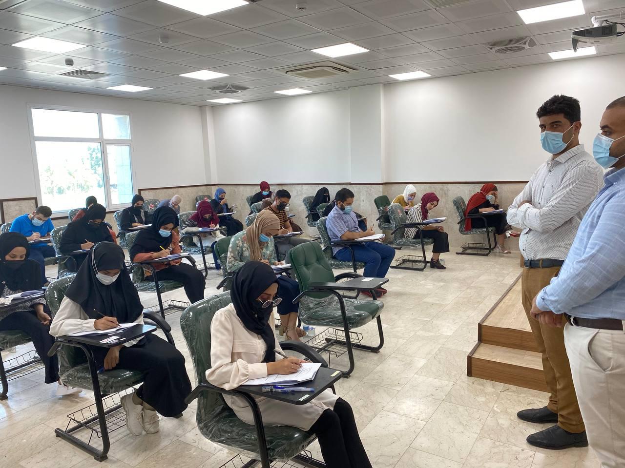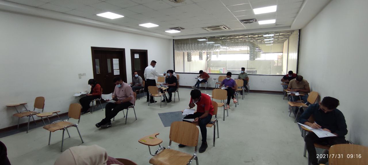 جانب من الامتحان الحضوري لطلبة المرحلة الرابعة - قسم الهندسة المدنية يوم الثلاثاء المصادف 28/7/2021 وسط اجراءات وقائية مشددة.