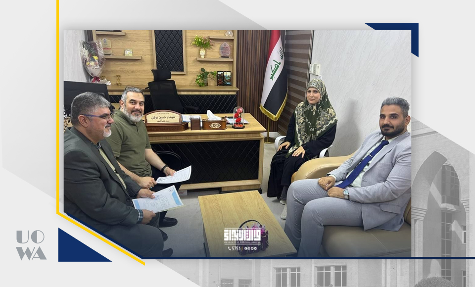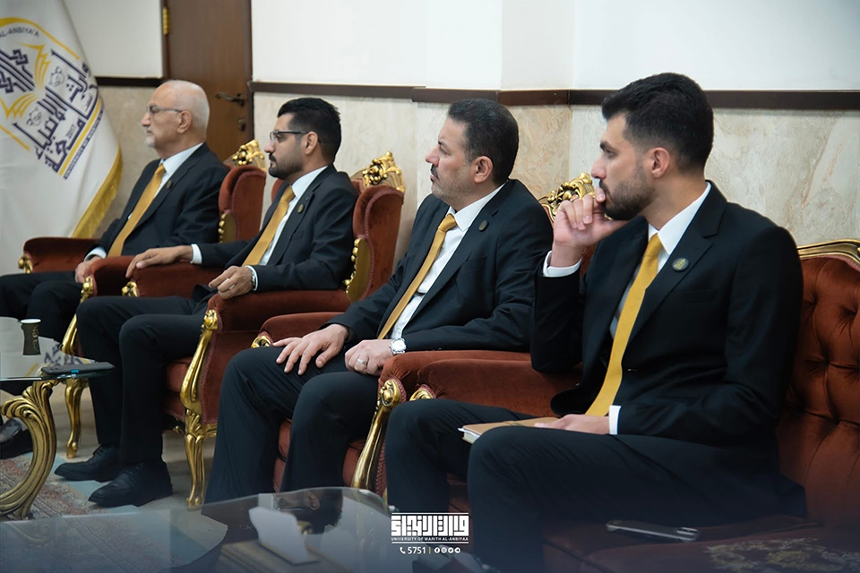 As part of its efforts to strengthen institutional cooperation with state institutions, the Presidency of the University of Warith Al-Anbiyaa received a high-level delegation from the Iraqi Ministry of Foreign Affairs, headed by the Deputy Minister for Political Planning, Dr. Hisham Al-Alawi. The delegation was welcomed by the University President, Professor Dr. Ibrahim Saeed Al-Hayyawi, accompanied by the Vice President for Scientific Affairs, Professor Dr. Waqed Al-Moussawi, and members of the University Council.