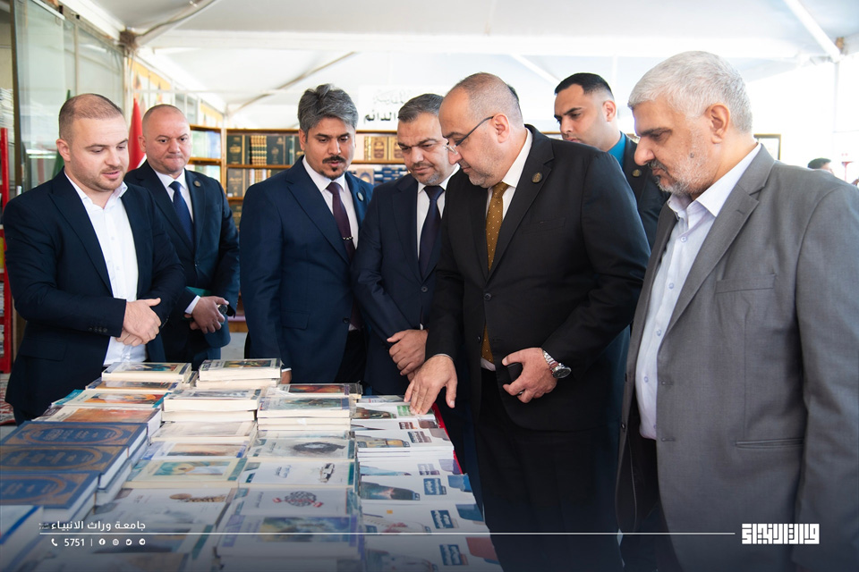 In commemoration of the birth anniversary of Lady Zainab al-Kubra (peace be upon her), Warith Al-Anbiyaa University (peace be upon him) hosted the exhibition “Al-Shajarah Al-Tayyibah lil-Kitab” organised by the Festival and Religious Events Department of the Holy Al-Hussain Shrine Secretariat, with the presence of the University President, Prof. Dr. Ibrahim Saeed Al-Hayyawi, along with faculty members and students.