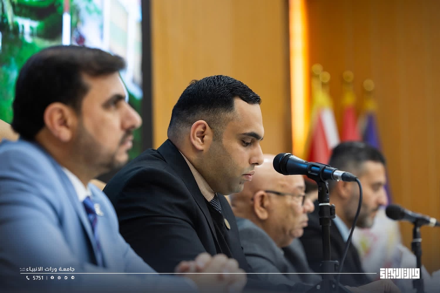 The Dean of the College of Islamic Sciences at Warith Al-Anbiyaa University (peace be upon him), Dr. Talal Faiq Al-Kamali, participated in a meeting chaired by the Representative of the Supreme Religious Authority and the Sharia Custodian of the Holy Imam Hussein Shrine, His Eminence Sheikh Abdul Mahdi Al-Karbalai (may his honor endure).