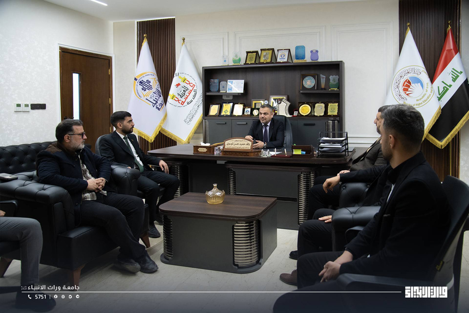 Within the framework of institutional follow-up and the development of administrative performance, the President of Warith Al-Anbiyaa University, Professor Dr Ibrahim Saeed Al-Hayyawi, accompanied by the Scientific Assistant, Professor Dr Waqed Al-Moussawi, held a meeting with the University’s registration team following the commencement of official attendance by first-year students.